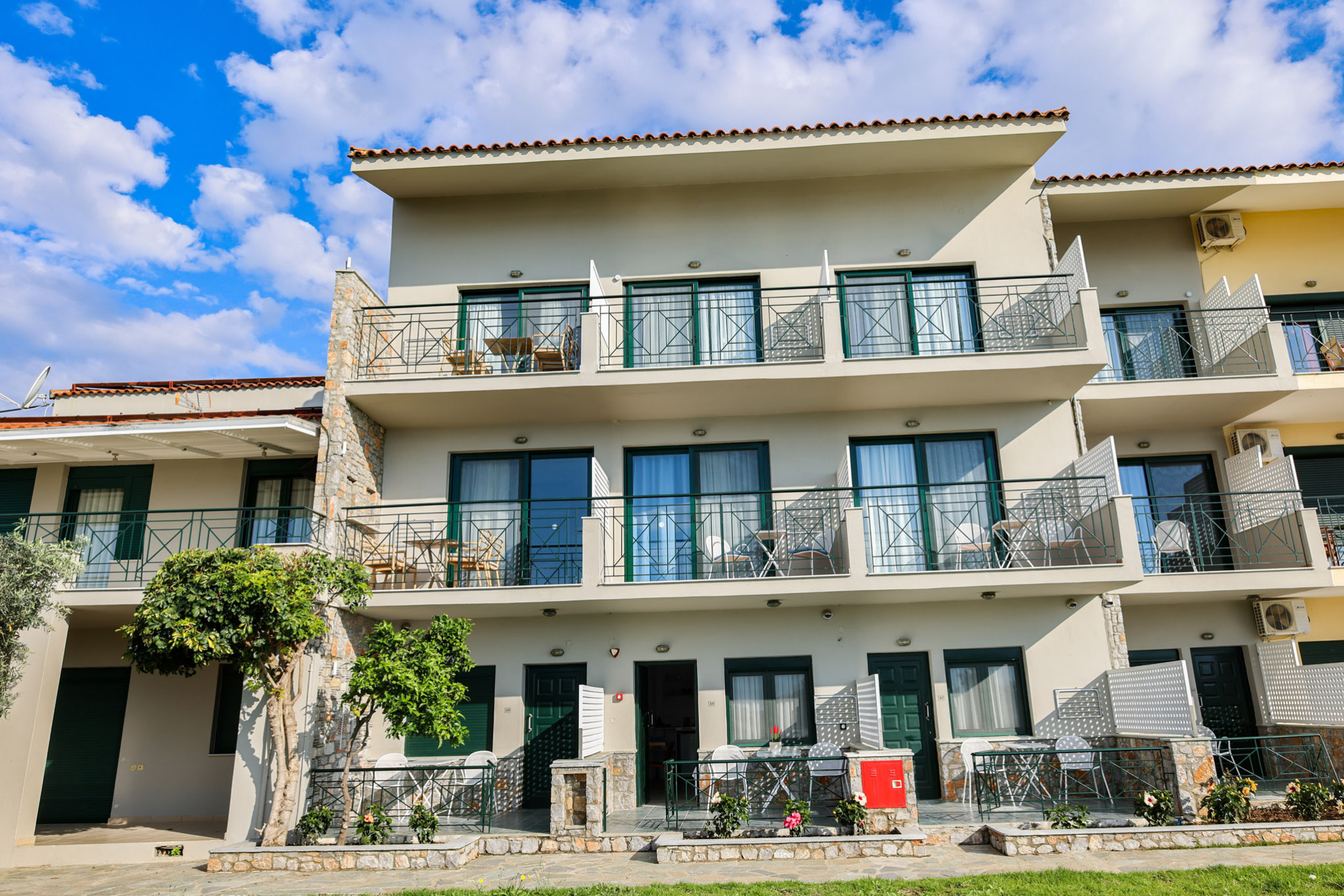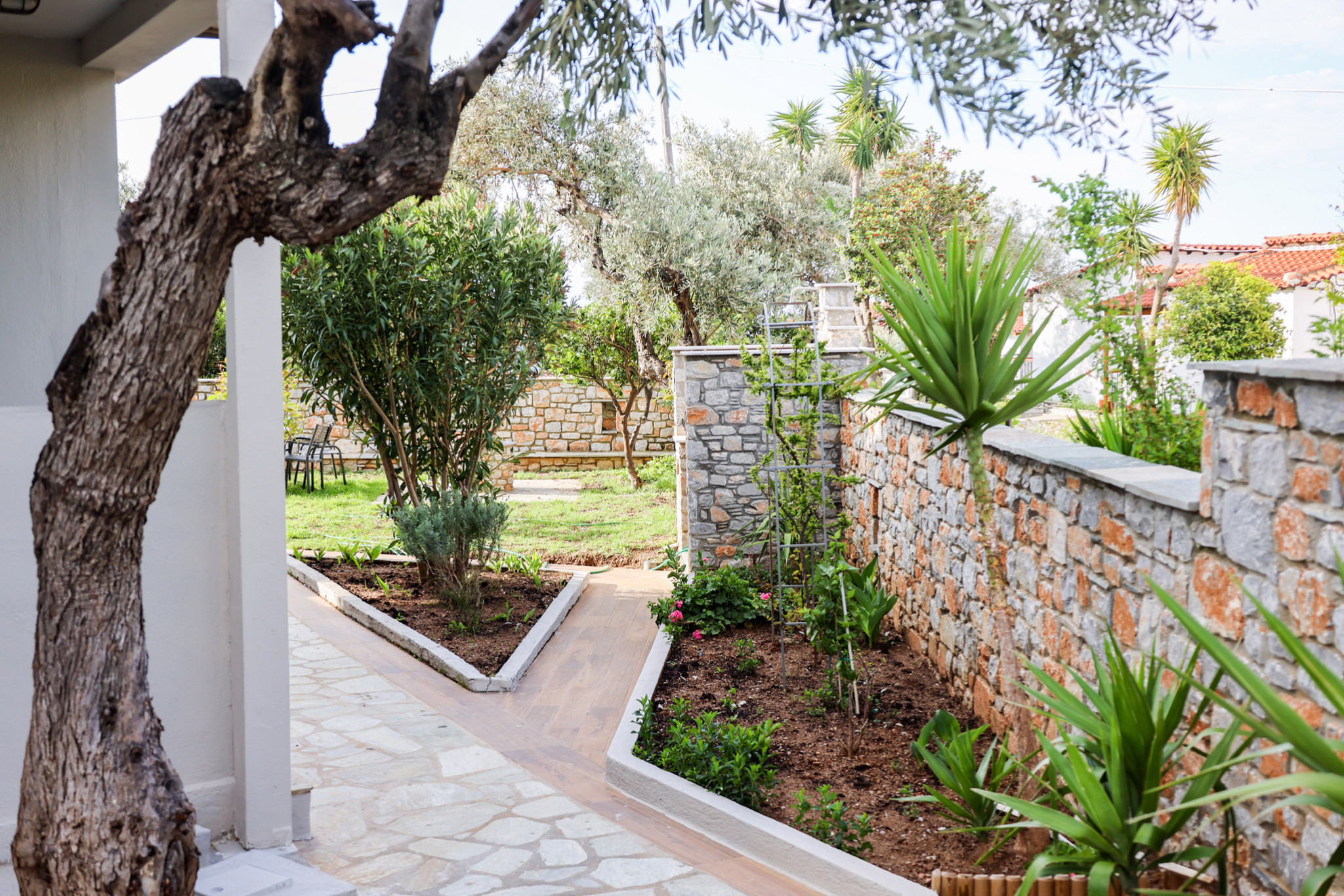 Azzurro is nestled in the realm of nature, where the summer sunlight meets the colorful palettes of Skiathos. Found very close to the peaceful sea, the rooms are surrounded by verdant landscapes with symbolic Greek olive trees. As soon as you walk through the stone-built grassy garden, you will immerse yourself into the ultimate tranquility.