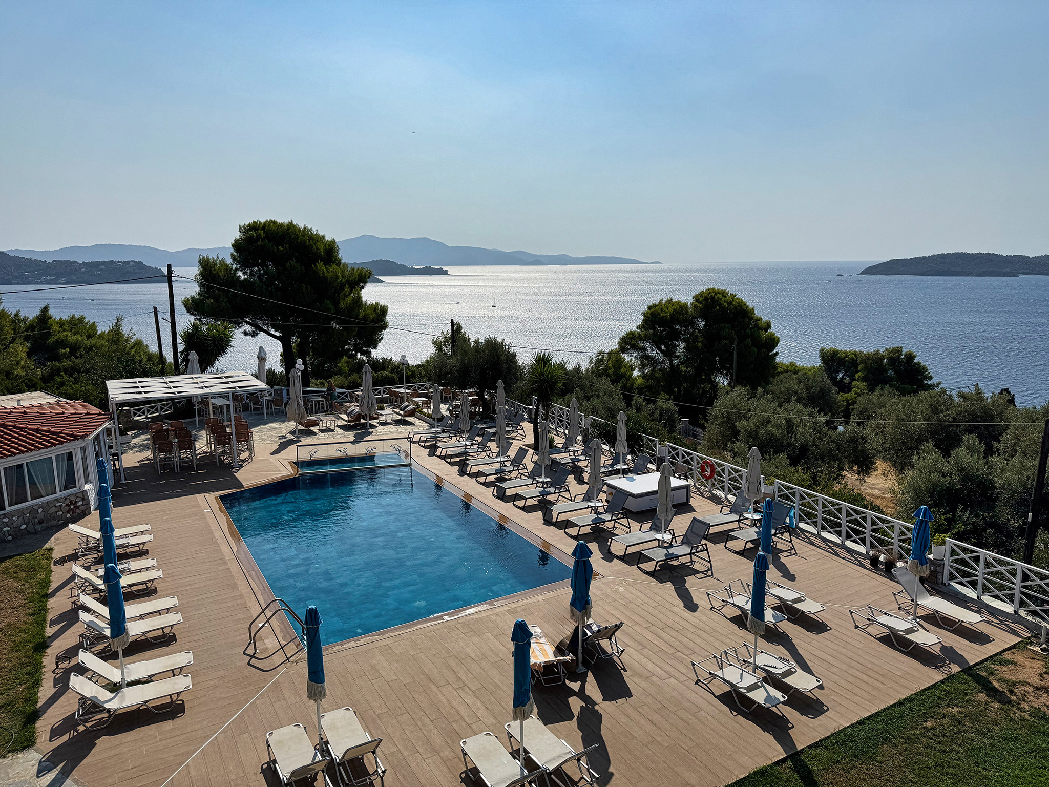 The dramatic views of Azzurro extend to the "Mamma Mia Island", Skopelos, and the unpopulated islet of Tsougrias. During the breathtaking sunset, your eyes will stare at this florid marvel, which creates unique postcard views from Skiathos.